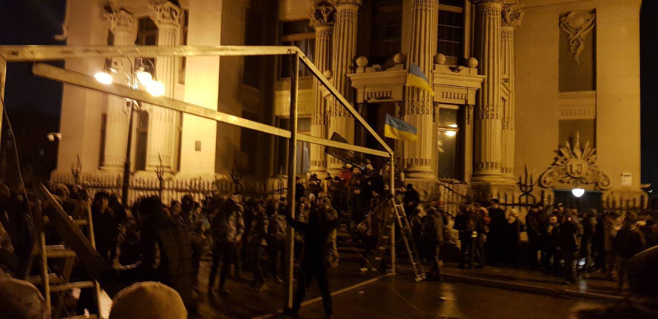 19:36  Около "Дома с химерами" начали устанавливать палатки, в это время под ОП толпа кричит "Богдана в отставку". Видео "Страны".