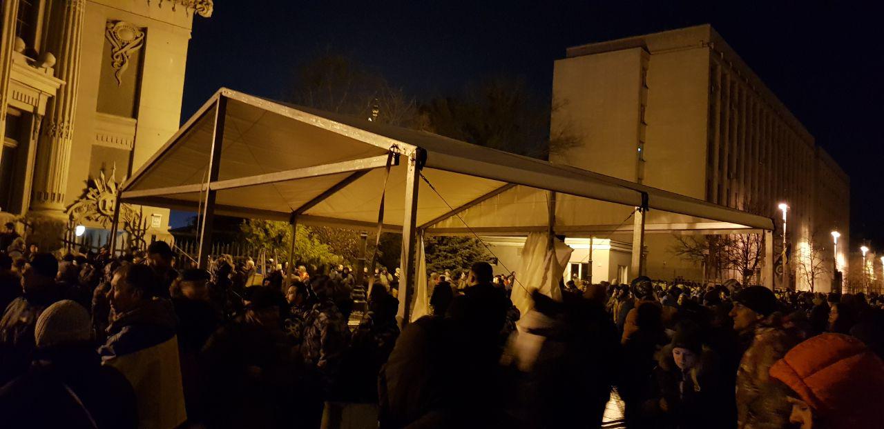 На улице Банковой под Офисом президента, где проходит акция протеста накануне нормандской встречи, Нацкорпус выстроил целый дом. Об этом сообщает корреспондент "Страны".