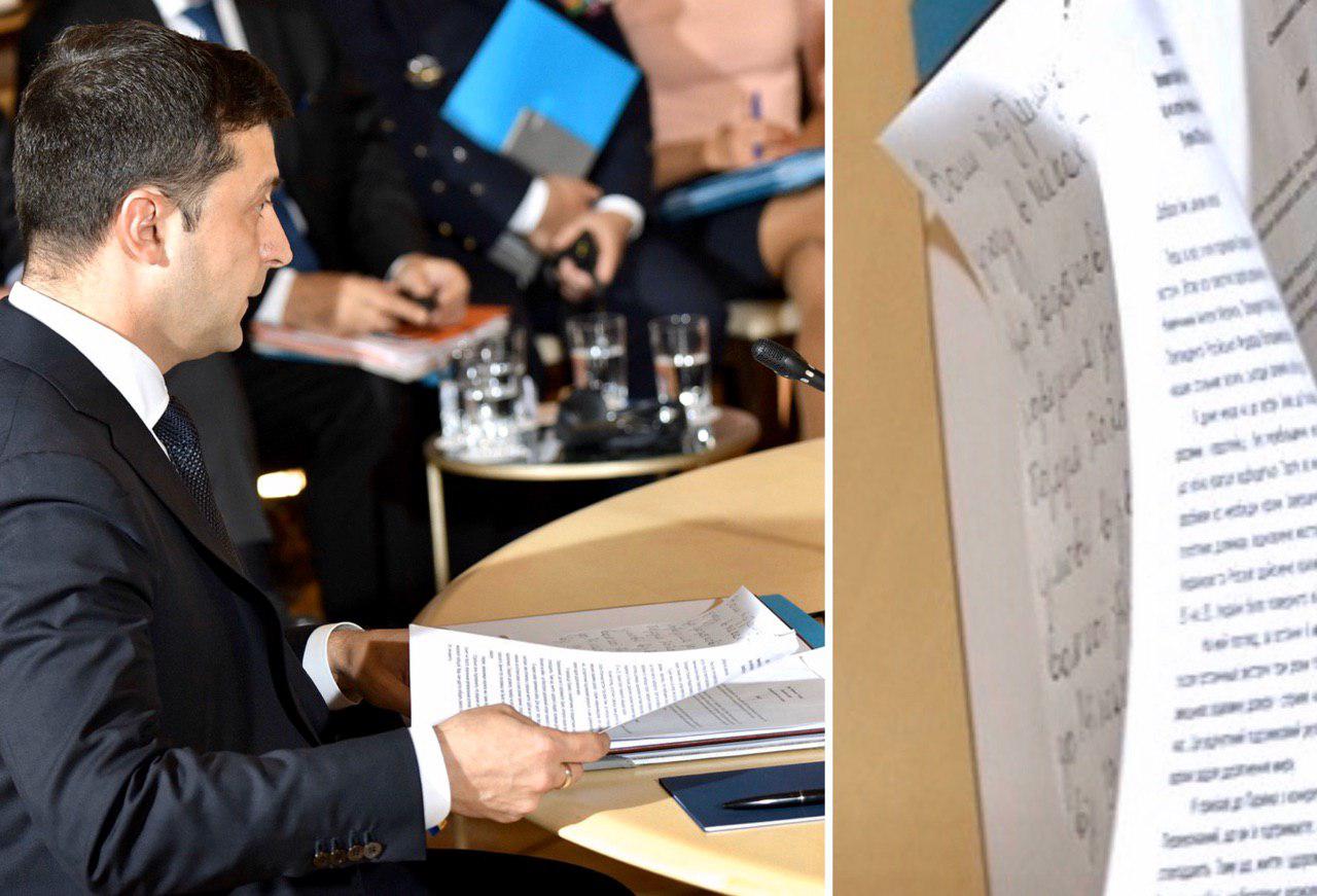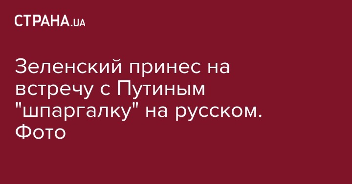 Зеленский принес на встречу с Путиным "шпаргалку" на русском. Фото