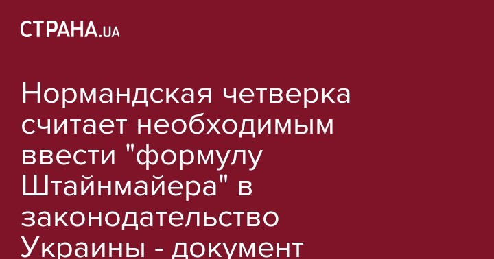"Они (стороны - Ред.) считают необходимым включить "формулу Штайнмайера" в украинское законодательство в соответствии с вариантом, согласованным в рамках N4 и Трехсторонней контактной группы", - сказано в документе.