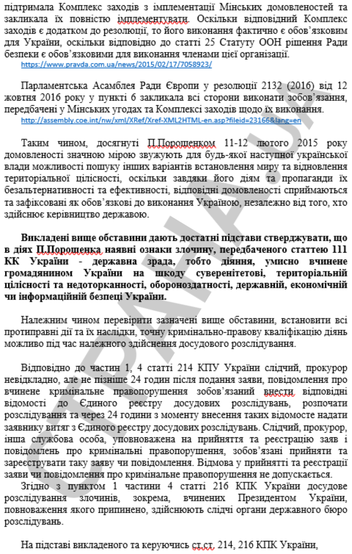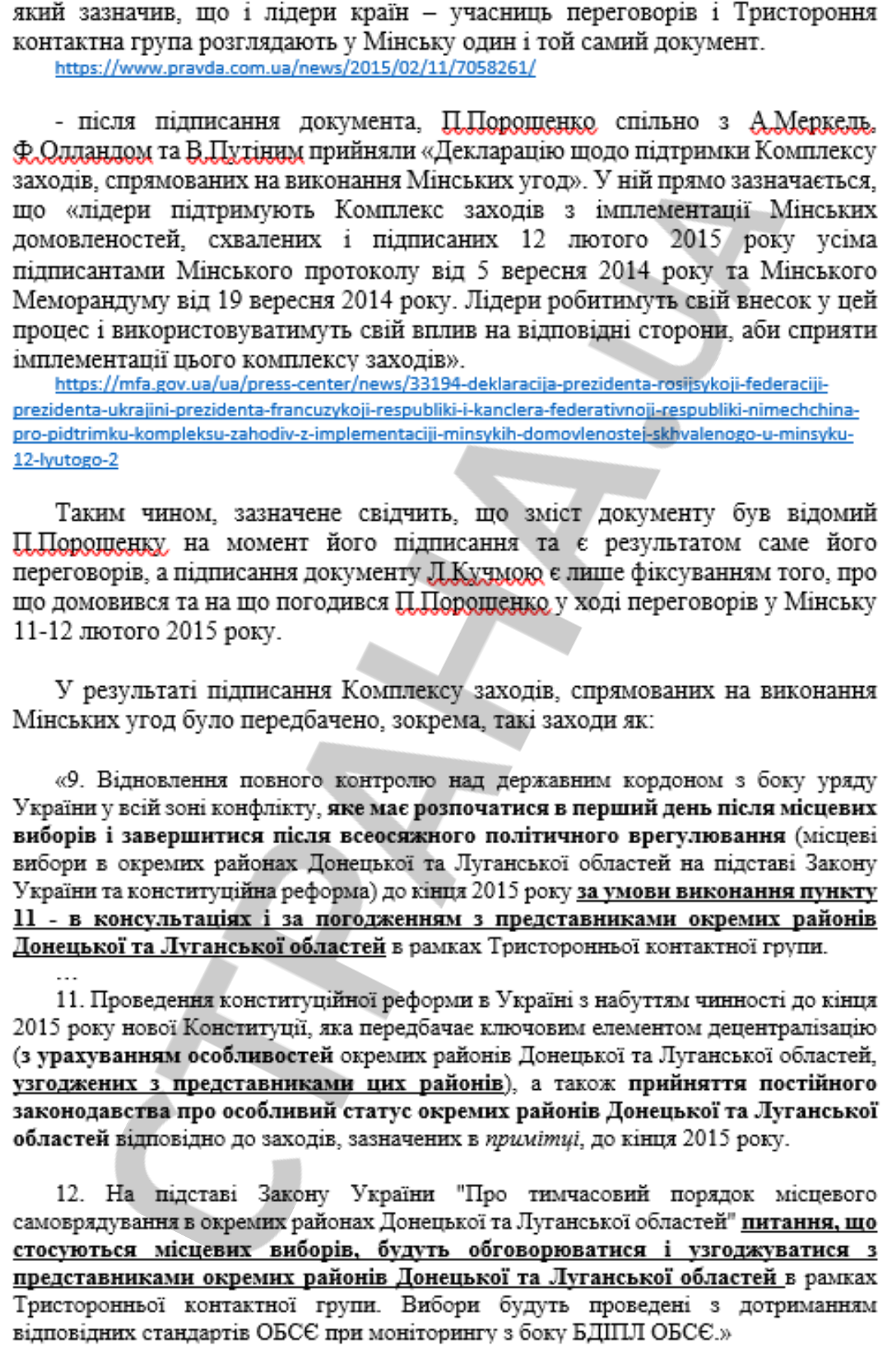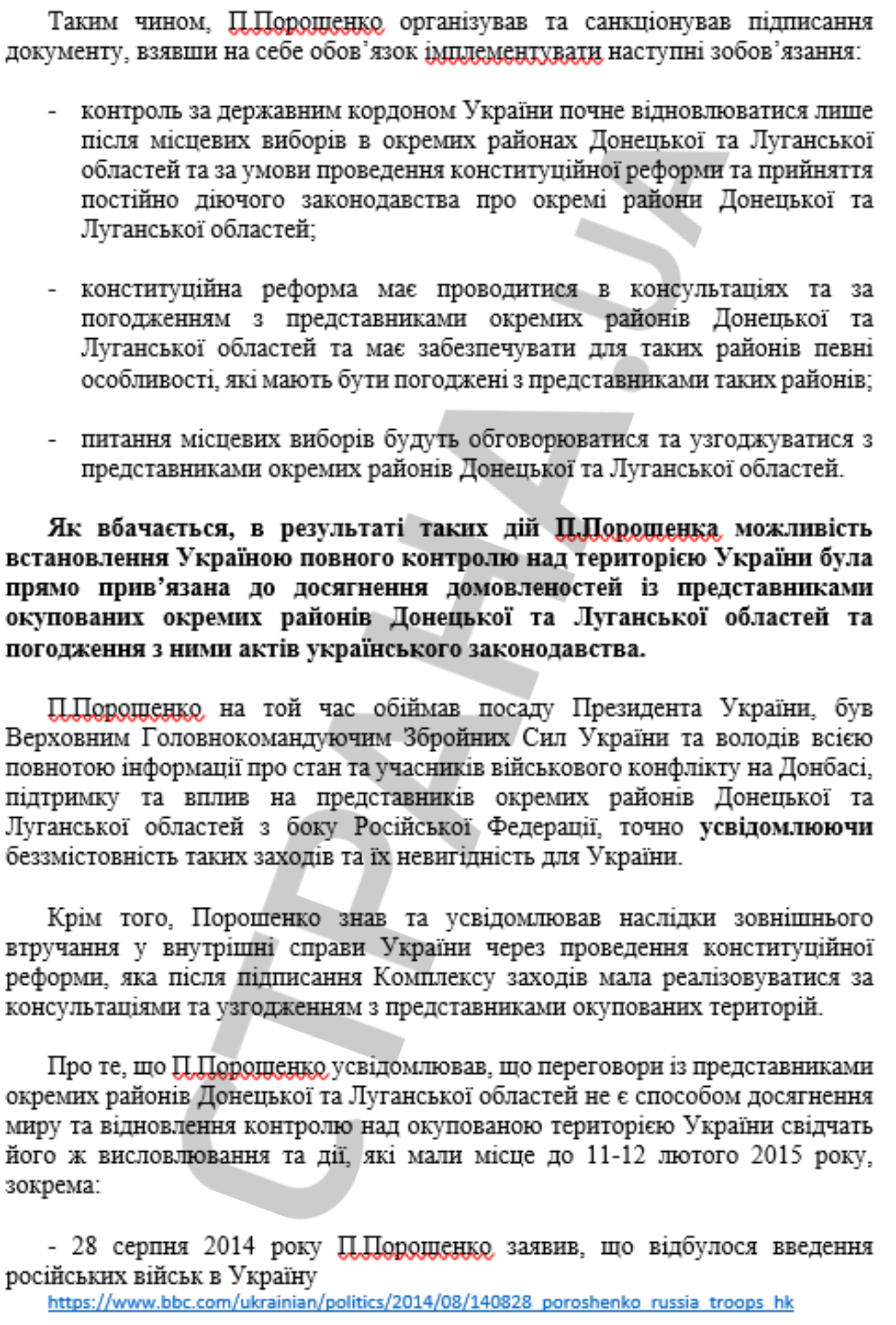 Это обвинения Порошенко в госизмене при подписании Минских соглашений в феврале 2015 года.