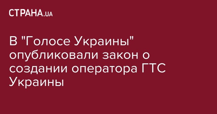 В официальном печатном издании Верховной Рады "Голос Украины" опубликован закон "О создании условий для обеспечения выполнения обязательств по отделению деятельности по транспортировке природного газа". Этот закон был одним из условий продления договора на транзит российского природного газа.