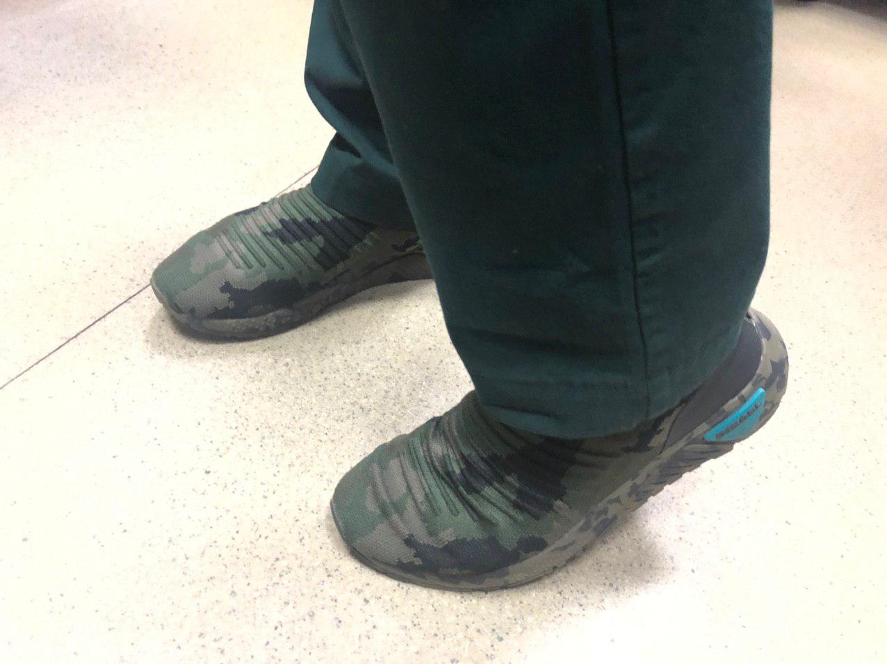 Так, Корнилов опубликовал фото с Соловьевым, на котором он стоит в спортивных кроссовках цвета хаки.