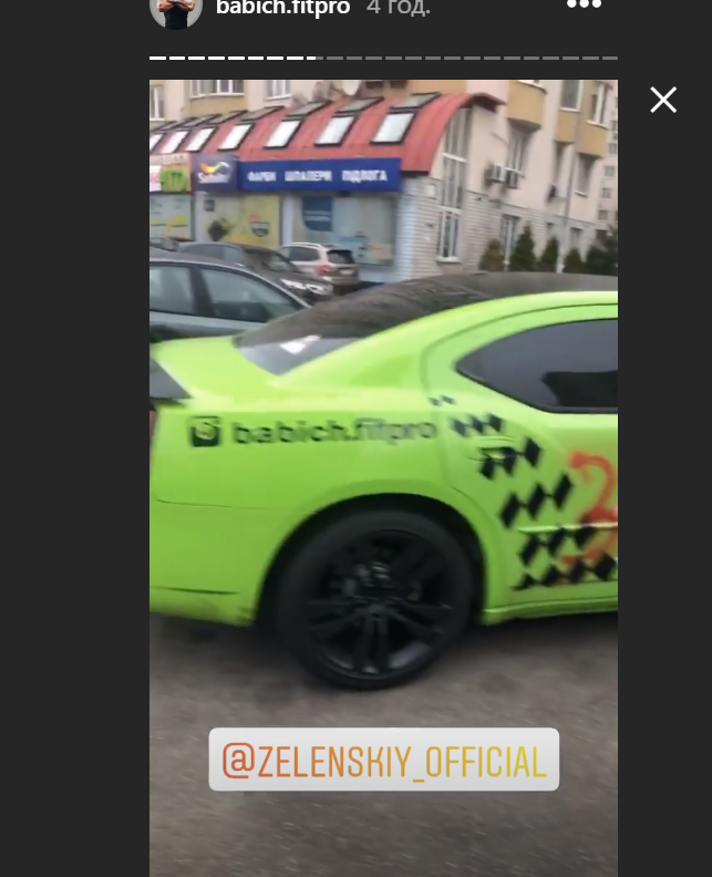 Также опубликовано видео, на котором видно, что его автомобиль Dodge Charger SRT-8, раскрашенный в цвета команды Зеленского, вандалы облили красной краской, перечеркнув слово "Зе". Также вандалы написали оскорбление "Зебил".