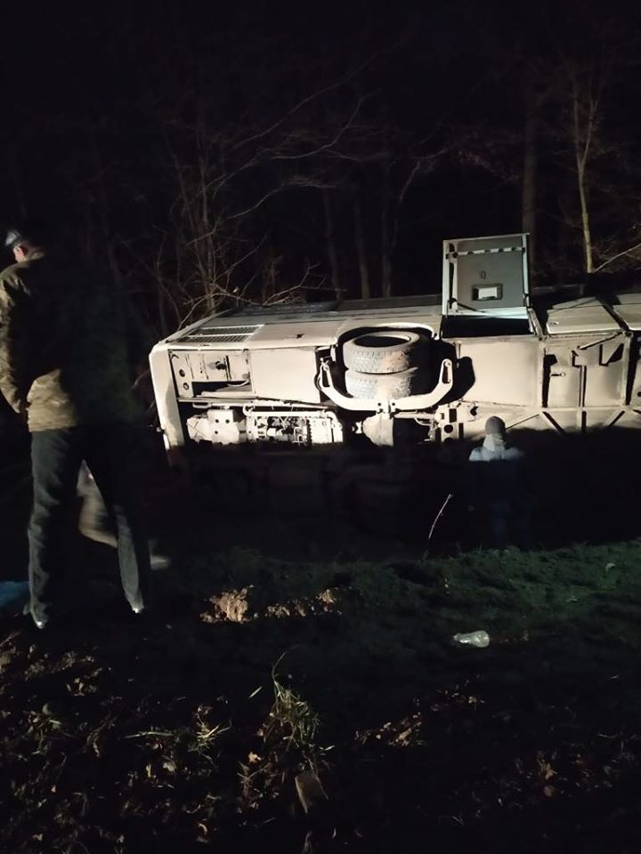 На трассе Киев-Чоп в Житомирской области вечером 12 декабря перевернулся автобус с пассажирами, следовавший в Польшу, в результате чего четыре человека госпитализированы. Об этом сообщает Новоград-Волынский городской совет в Facebook.