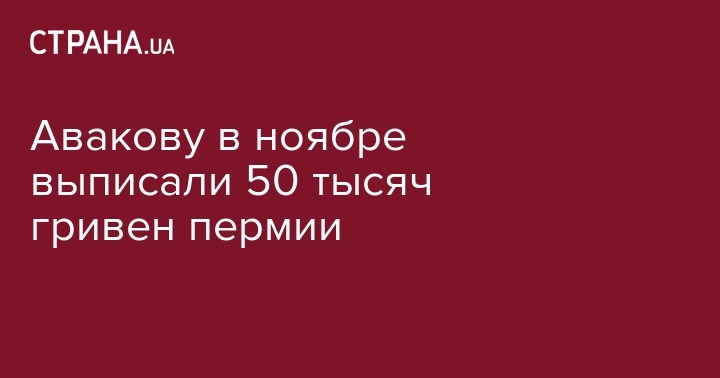 Авакову в ноябре выписали 50 тысяч гривен пермии