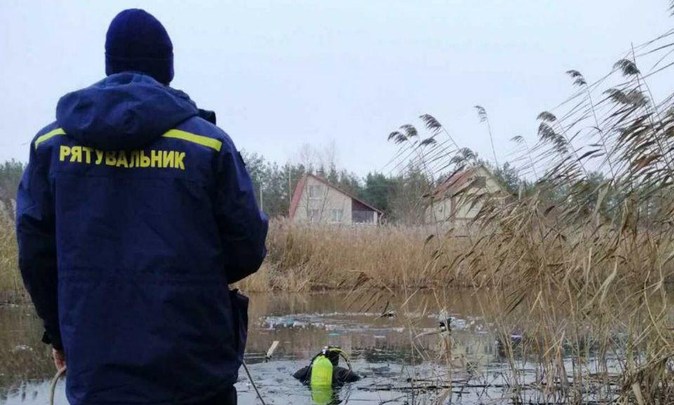 Под Киевом двое мужчин провалились под лед на озере. Их тела доставали водолазы ГСЧС, фото