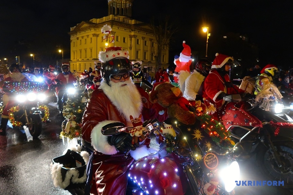 Так, около двух сотен байкеров, одетых в костюмы Санта-Клауса, ангелов, снеговиков, эльфов, оленей и даже елок, в сопровождении музыкантов устроили праздничный мотопробег, раздавая детям подарки и фотографируясь со всеми желающими.