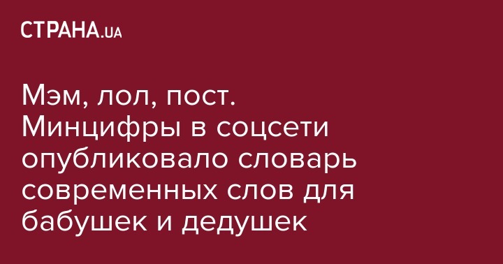 Министерство цифровой трансформации Украины решило вести в соцсети новую рубрику и объяснять смысл непонятных слов. Авторы инициативы считают, что нововведение будет особенно полезным для людей старшего возраста.