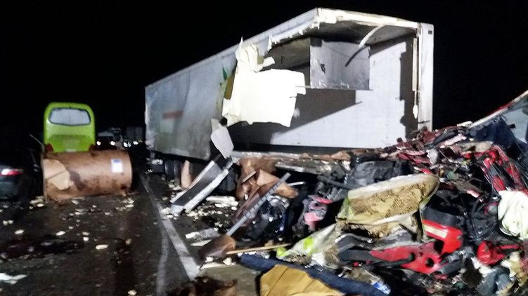 По словам пресс-секретаря управления Юлии Ковтун, по предварительной информации, водитель автобуса во время обгона другого транспортного средства выехал на встречную полосу и столкнулся с грузовиком. В автобусе находились 2 водителя и 31 пассажир, в том числе младенец. Водитель, находившийся за рулем, и двое пассажиров погибли на месте. В настоящее время госпитализированы 16 пассажиров (ранее сообщалось о 15 пострадавших - Ред.).