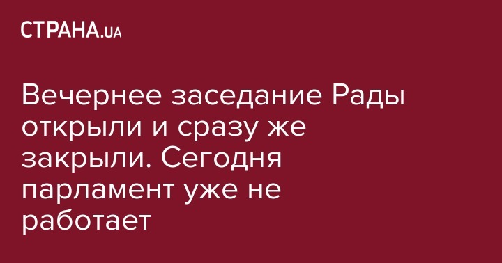 Вечернее заседание Верховной Рады было открыто спикером Дмитрий Разумков в 16:00 и сразу же закрыто. Сегодня парламент работать уже нет будет. Об этом сообщает корреспондент "Страны".