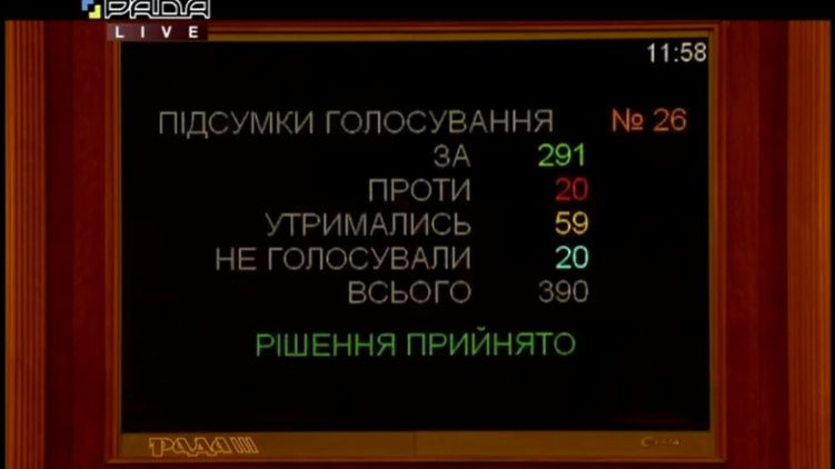 "За" проголосовал 291 депутат.