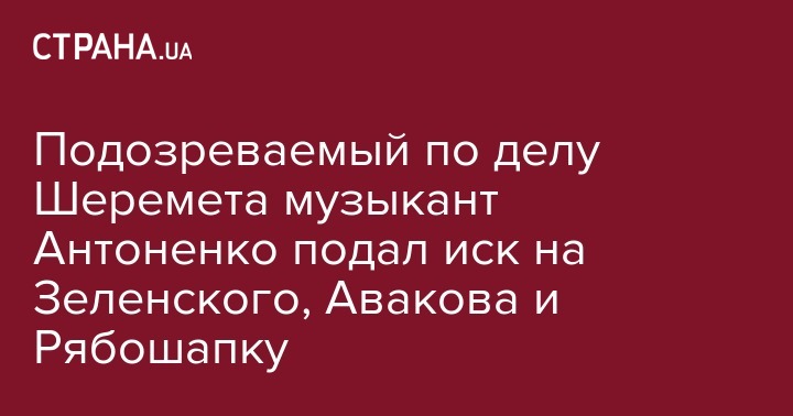 Ветеран АТО и музыкант Андрей Антоненко (Riffmaster), подозреваемый в организации убийства журналиста Павла Шеремета, подал иск в Печеский суд на президента Владимира Зеленского, министра внутренних дел Арсена Авакова, генпрокурора Руслана Рябошапку и заместителя главы Национальной полиции Евгения Коваля.