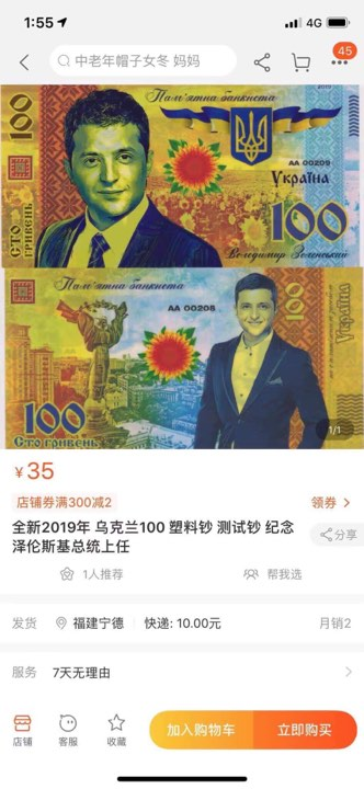 На китайских торговых площадках начали продавать купюры с президентом Украины. Фото