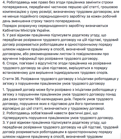 Он опубликовал у себя в Facebook выдержки из норм проекта ТК.