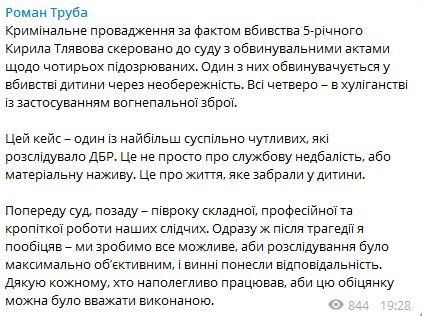 По его словам, "этот кейс-один из самых общественно чувствительных, которые расследовало ГБР". "Это не просто о служебной халатности, или материальную наживу. Это о жизни, которую забрали у ребенка", - написал Труба.