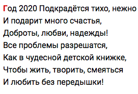 С Новым годом! Пусть 2020-й сотрет все огорчения и умножит успех. Пусть каждая минутка нового года принесет что-то яркое и восхитительное. Пусть 2020-й станет годом важных встреч и потрясающих начинаний, годом рождения мечты, которая непременно исполнится! Здоровья и всех-всех благ!