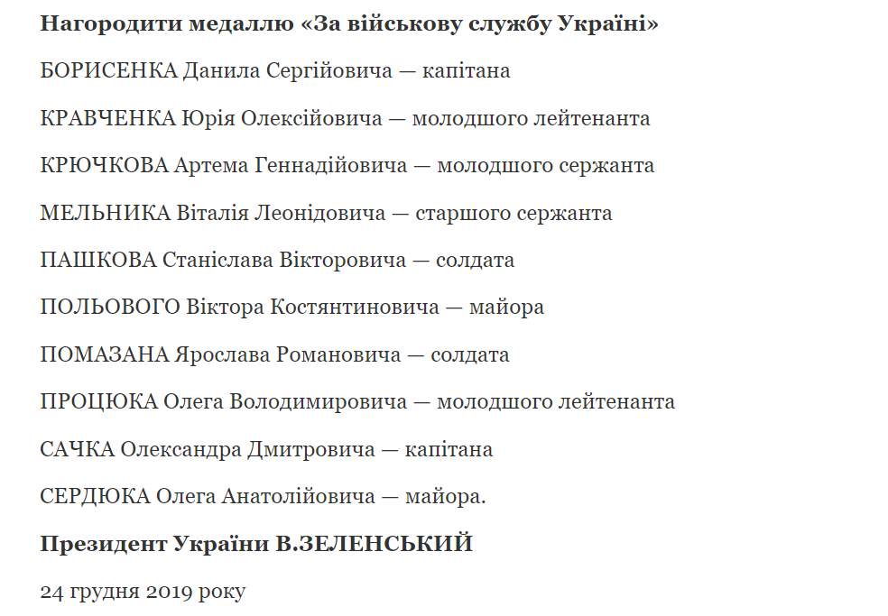 Пресс-служба президента Украины опубликовала указ о списке награжденных "За личное мужество" и самоотверженные действия, проявленные в защите государственного суверенитета и территориальной целостности Украины.