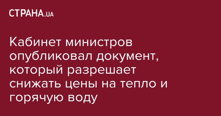 Кабинет министров опубликовал документ, который разрешает снижать цены на тепло и горячую воду
