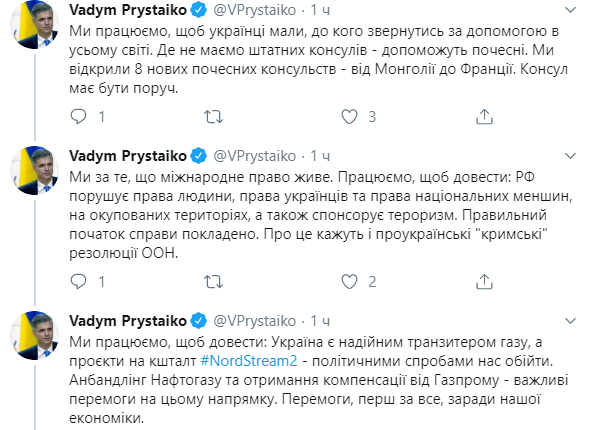 "Наше правительство работает для того, чтобы люди чувствовали результаты уже сейчас, а не через 3-4 года. Сегодня - немного предновогодних итогов Министерства иностранных дел. Впоследствии - о планах", - написал Пристайко.
