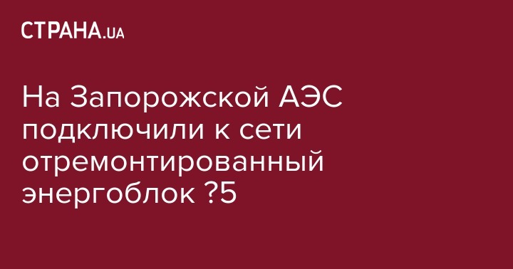 На Запорожской АЭС подключили к сети отремонтированный энергоблок №5