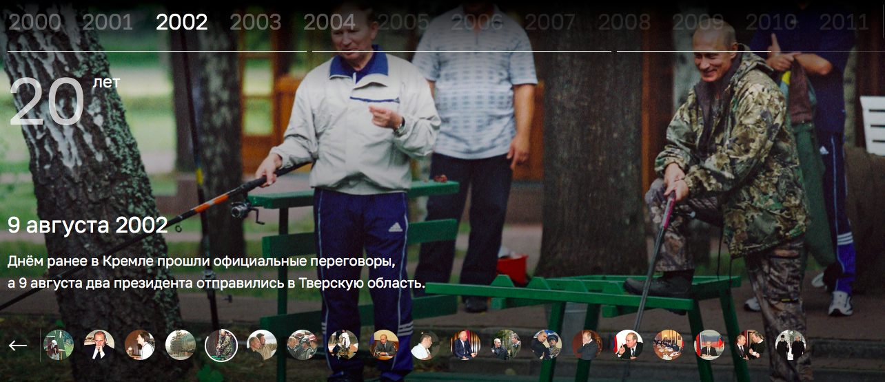 На момент подготовки материала опубликованы снимки с участием Владимира Путина в период с 2000 по 2004 год включительно.