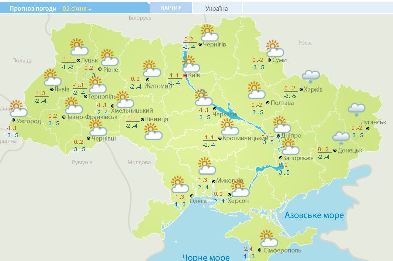 Морозец и солнце. Стала известна погода в Украине на 2 января