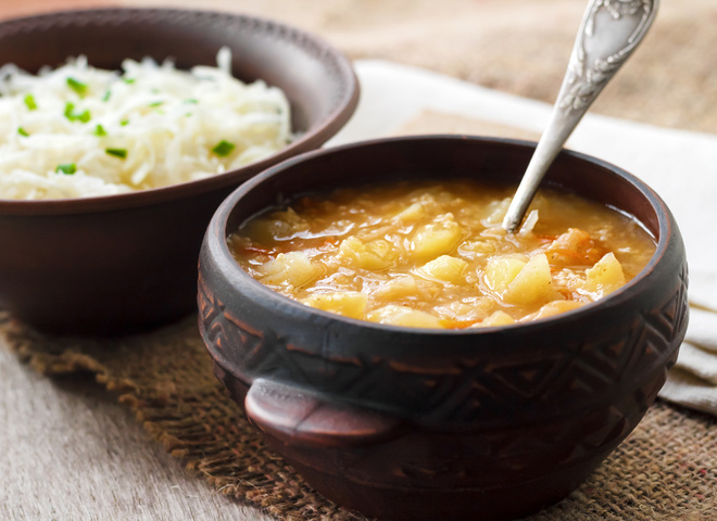 5. Капустняк - это постный борщ из кислой капусты, картофеля, моркови, свеклы и лука с пшеном. При этом овощи не обжаривают, а тушат вместе с картошкой. Можно добавить пастернак или сельдерей.