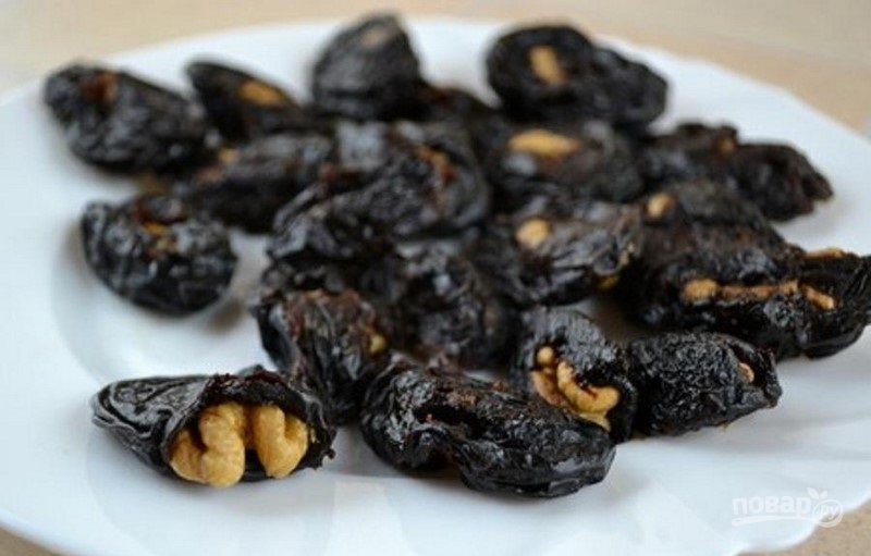 10. Чернослив со сладкой начинкой. Его нужно промыть и залить на 15 минут горячей водой. При наличии удалить косточки и заполнить начинкой. Это могут быть орехи, бананы с апельсиновой цедрой. Можно полить чернослив медом.