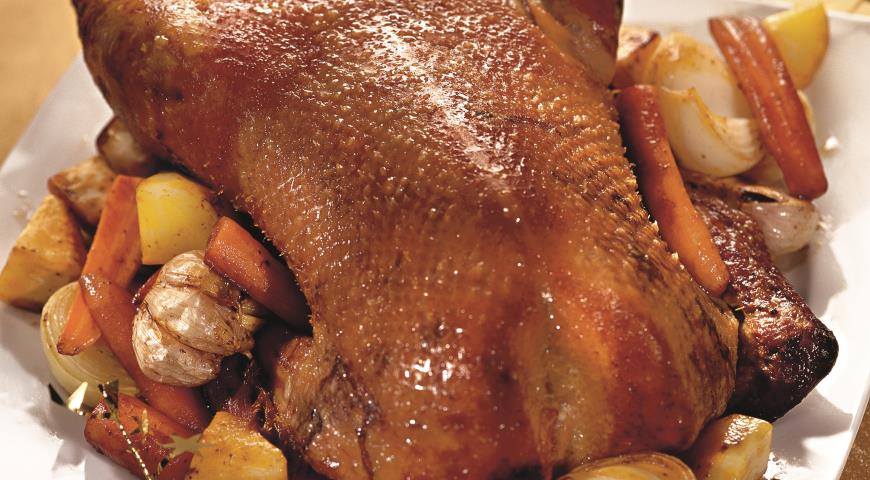 1. Рождественский гусь. Запеченная целиком птица, будь то гусь, утка или курица - это одно из любимых блюд на многих праздниках. Птицу необходимо предварительно натереть солью и перцем, сделаит зубочисткой частые проколы на тушке. Разогреть духовку до 220 °С и уложить гуся на решетку (под нее поставить противень). Перед этим тушку можно смазать смесью из меда, сахара и горчицы. Через некоторое время уменьшить температуру до 160 °С. На запекание уходит примерно 2 часа, при этом каждые 15-20 минут птицу нужно поливать растопившимся жиром с противня. После того, как гусь готов, его нужно завернуть в фольгу и оставить в теплом месте до подачи на стол. Подавать лучше с каким-нибудь соусом.
