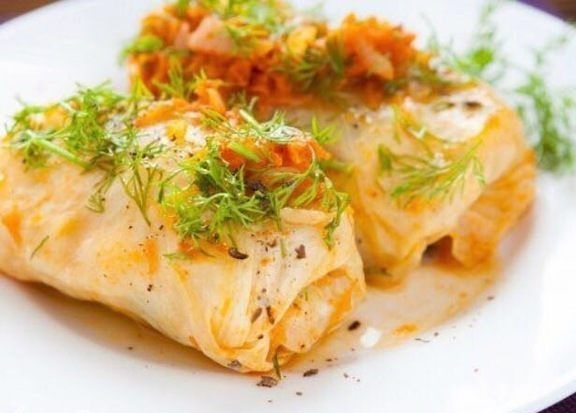 Еще один вариант - постные голубцы с начинкой из пшена или риса с овощами, либо с тушенной капустой. Тушить их можно на медленном огнем в смеси из овощного бульона и томатной пасты, добавив в кастрюльку лавровый лист.