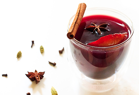 4. Глинтвейн. Этот популярный зимний напиток готовят из подогретого красного вина, куда добавляют приправы - корицу, гвоздику, мускатный орех, цедру лимона и апельсина и сахар или мед по вкусу. Можно приготовить глинтвейн на белом вине, например, с мандаринами. Подают его горячим.