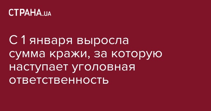 В связи с изменением размера прожиточного минимума с 1 января 2020 года выросла и сумма, за кражу которой наступает уголовная ответственность. Об этом сообщает УНН.