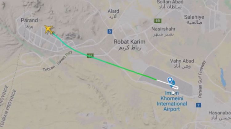 Сервис Flightradar24 пишет, последняя информация о местоположении самолета была получена в районе города Паранд недалеко от Тегерана.