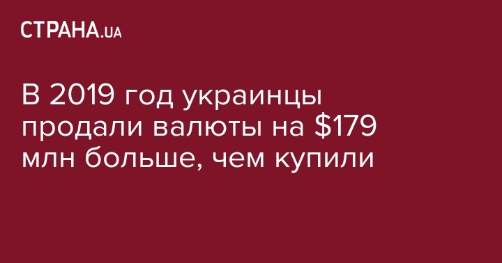 В 2019 году украинцы продали на 0,179 млрд долларов США больше, чем купили. Об этом сообщает УНН со ссылкой на пресс-службу НБУ.