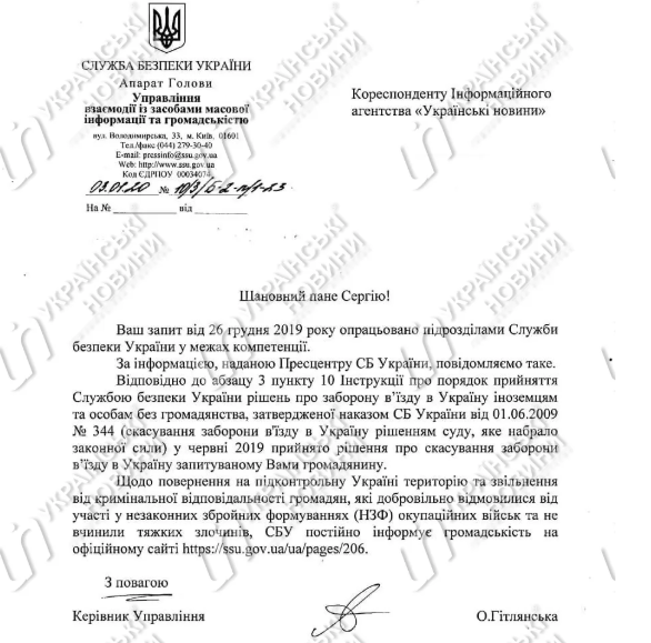 Служба безопасности Украины отменила запрет на въезд на территорию Украины российскому актеру Федору Добронравову. Об этом говорится в ответе СБУ на запрос "Украинских новостей".