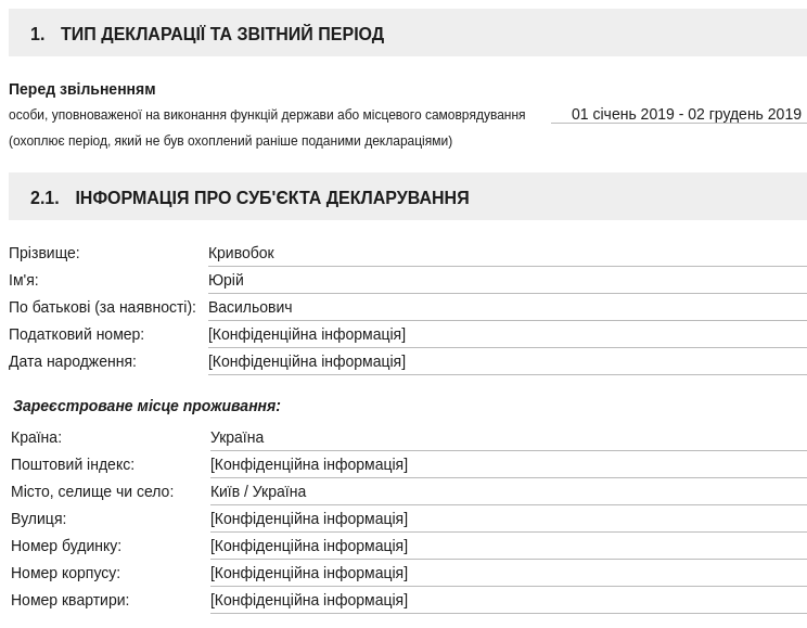 Издание называет Кривобока "самым богатым прокурором Украины". Об уходе с поста прокурора говорит поданная еще в начале декабря 2019 декларация перед увольнением.