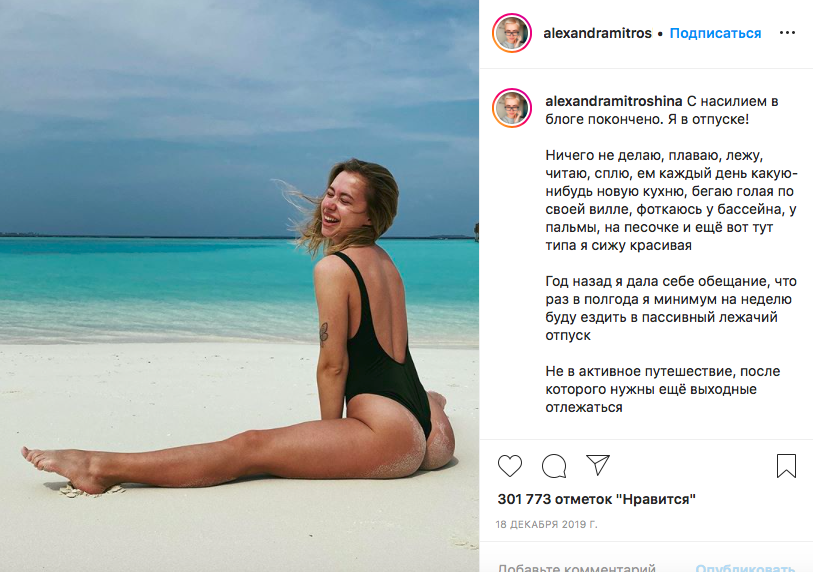 Для понимания тематики Instagram Александры приведем несколько постов: о стрижке, стандартах красоты, снимки с отдыха в купальнике.