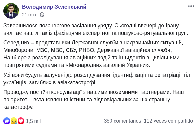 12:20 На сайте посольства Украины в Иране появился отредактированный текст о катастрофе. Там уже нет слов о том, что это не теракт и не ракета.