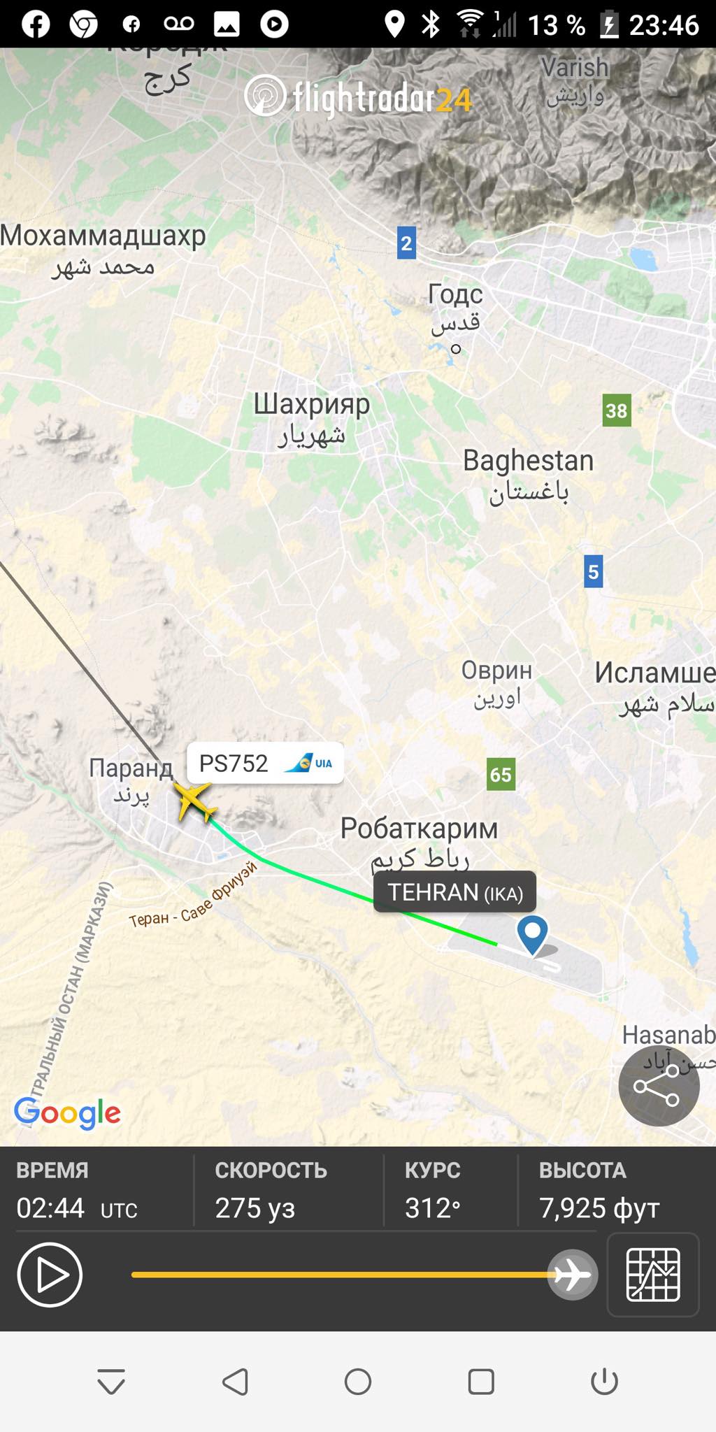Самолет рухнул в районе иранского города Паранда. Он вылетел из аэропорта Хомейни в 4:42 по Киеву, а уже через две минуты пропал с радаров.