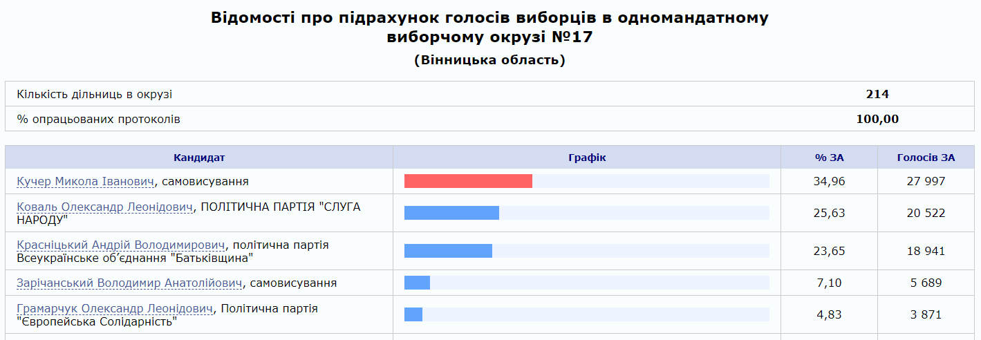 Как стало известно "Стране", Грамарчук на последних выборах в Раду баллотировался как раз в Винницкой области (город Ладижин и территория вокруг него) от партии экс-президента Петра Порошенко "Европейская солидарность". На них он проиграл, заняв в своем округе лишь 5 место с результатом 4,83%.