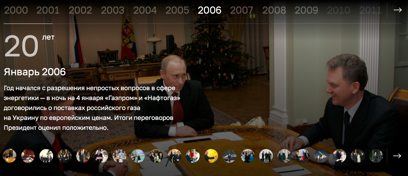 Январь 2006 года. В ночь на 4 января "Газпром" и "Нафтогаз" договорились о поставках российского газа по европейским ценам, гласит описание кадров.