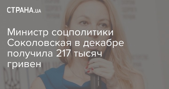 Министр социальной политики Юлия Соколовская в декабре получила 217 тыс. гривен, тогда как за ноябрь - 56,6 тыс. гривен. Ее заместители получили - от 65,4 тыс. до 168 тыс. гривен, а государственный секретарь министерства – 60,3 тыс. гривен. Об этом говорится в официальном ответе Минсоцполитики на запрос издания "Украинские новости".