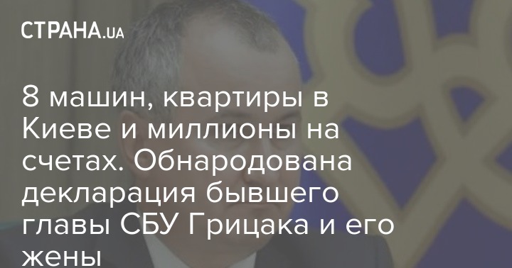 8 машин, квартиры в Киеве и миллионы на счетах. Обнародована декларация бывшего главы СБУ Грицака и его жены