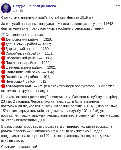 За минувший 2020 год патрульные полицейские Киева обнаружили и задокументировали 11 643 фактов управления автомобилями водителями, которые находились в состоянии алкогольного опьянения. Об этом сообщает пресс-служба Патрульной полиции Киева на Facebook.