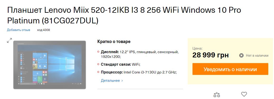 На сайте "Леново" эта модель планшета без дополнительного оборудования стоила в розницу 28 999 гривен ($1,2 тысячи) Сейчас, кстати, ее нет в наличии.