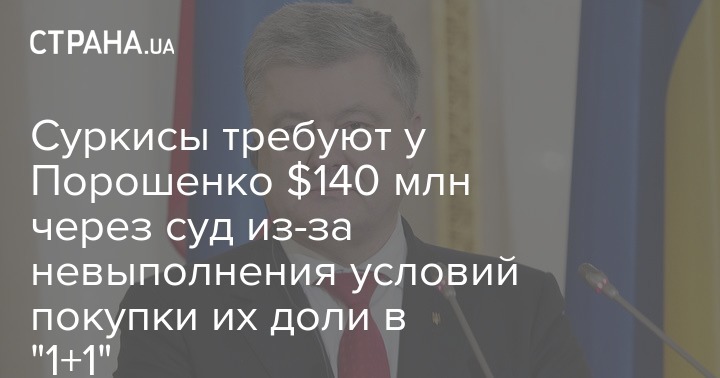Братья Григорий и Игорь Суркисы обратились в Лондонский международный арбитраж с иском против бывшего президента Петра Порошенко, требуя от него компенсировать $140 млн за невыполнение условия по продаже около 25% принадлежащих братьям акций телеканала "1+1".