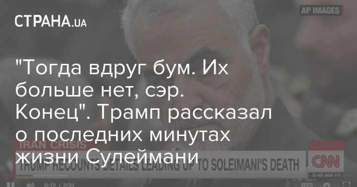 "Тогда вдруг бум. Их больше нет, сэр. Конец". Трамп рассказал о последних минутах жизни Сулеймани
