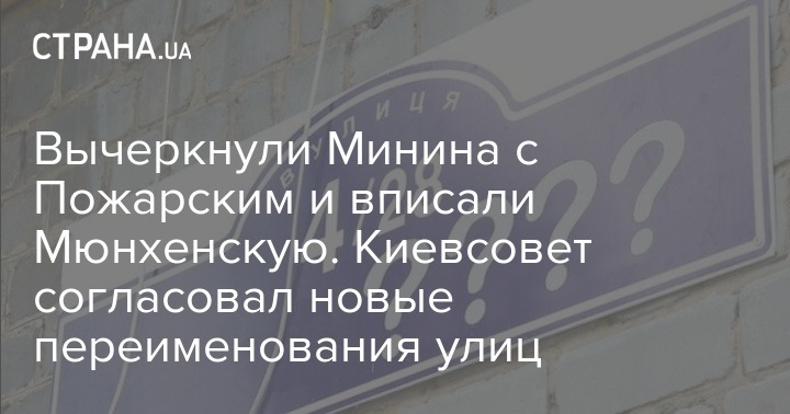 Вычеркнули Минина с Пожарским и вписали Мюнхенскую. Киевсовет согласовал новые переименования улиц