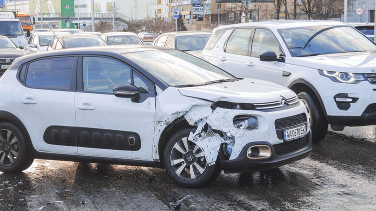 В Киеве на улице Саперно-Слободской столкнулись пять автомобилей: "Славута", Opel, Citroen и два Lanos. Причиной аварии стала обледеневшая улица. В массовом ДТП пострадал мужчина - его госпитализировали с травмой грудной клетки.
